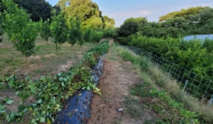 先ずは収穫前の準備で芋づるの撤去作業~マルチを剥がします。