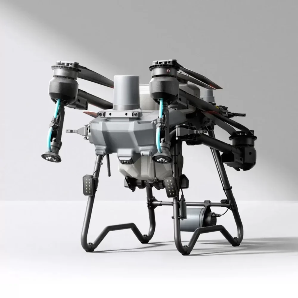 導入させていただいた機種は上記写真のDJIのAGRAS T25という機種。今回初めて間近で農業用ドローンを見ましたが、『デカッ!!』が最初の感想。そして機能を知れば『へ~、スゲー!』と未来の物を見ているような感覚でした(-_-;)。それでも導入のAGRAS T25はコンパクトな部類とのことで重量は本体のみで27㎏、バッテリー装着で最大で39.4㎏・サイズは最小で1050×690×820㎜、最大で2585×2675×780㎜。折りたたみが出来て1人でも車両への積載は可能なサイズです。
