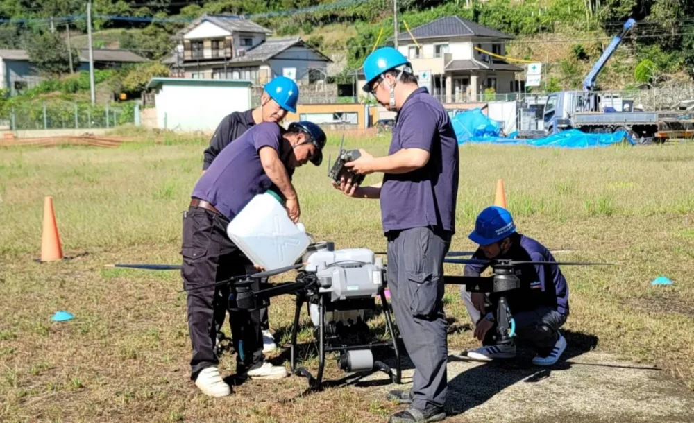 ドローン飛行の基礎の部分から実運用での様々な機器の使用方法、PCでの散布する地形の測量~データ入力やドローンとの通信方法、日々変わっていく法律まで様々な内容を教えて頂きました。