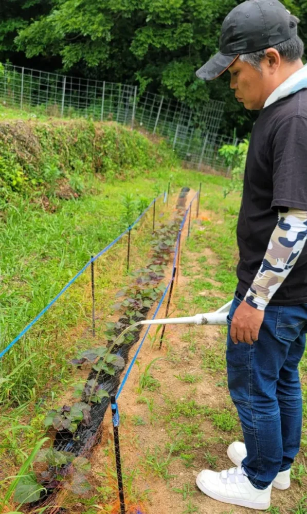 4月、5月に植えた芋苗に水やり。今年の深浦農園の品種は安納芋になりました!今のところ20本ほどで先日カラスの被害に遭ったため、対策としてネットを設置しています。カラスは頭が良いのでこれからも知恵比べですねぇ。