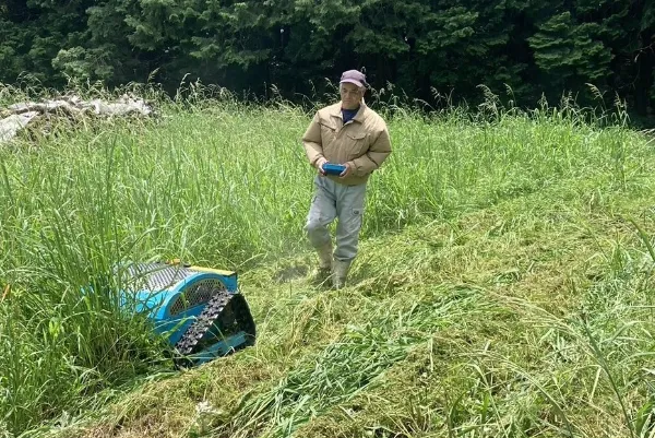 農業と草刈作業は切っても切れない関係…。 ブログを書いている私もかつて璃の香栽培に携わり1日中草刈り作業をしていた時期もありました。信じられないと思いますが雑草は放っていると大人の背丈以上に伸び、雑草の種類によっては木の枝のように固くなるものもあり、それはそれは大変な作業です。また雑草が伸びると獣の隠れ蓑にもなり住み着く原因にもなります。以前草刈りをしていた際には雑草の生い茂った中の1~2m先をイノシシ親子が平然と歩いて横切り親イノシシと目が合うという怖い経験もありました。また昨今の地球温暖化の影響もあり日中の草刈作業は熱中症との戦いでもあります。夏の時期の日中の作業はこまめな休憩と水分補給が不可欠で、時間を気にせず集中して作業していると非常に危険です。農業に携わる者にとってラジコン草刈機はまさに救世主のような存在ですね!
