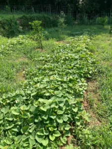 地域の方々のお話ではサツマイモは収穫目前でイノシシの被害に遭って全滅した事もあるようで… イノシシには甘く美味しい匂いが分かるようです。電柵+ワイヤーメッシュで対策はしてますが、相手も命がけなのでこればかりは何とも…